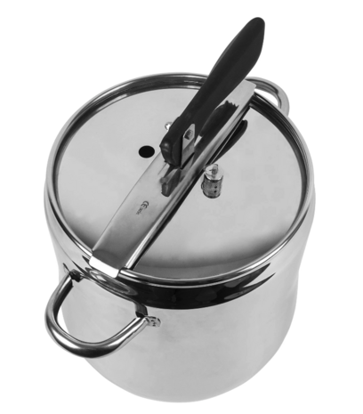 Der Schnellkochtopf ist aus hochwertigem Edelstahl gefertigt.