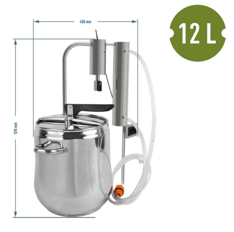 DESTYLATIONSVORRICHTUNG: Kühler mit einem Spiralrohr mit einem Durchmesser von 8 mm und einer Länge von 2 m + Siedler, Material: Edelstahl.